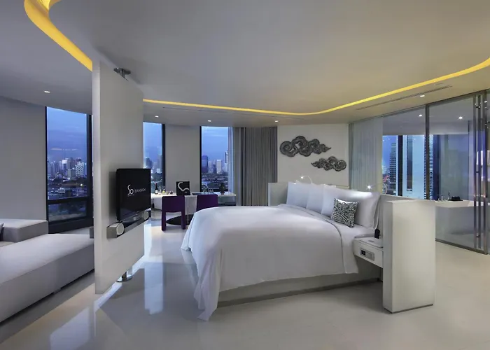 Det 30-våningars So Bangkok Hotell erbjuder 237 rum inom 25 minuters promenad från Siam Square. Medan du är här, besök Lumphiniparken, som kan nås till fots. Njut av en utomhusbassäng eller turkiskt ångbad och solarium, som erbjuds på detta 5-stjärniga hotell.